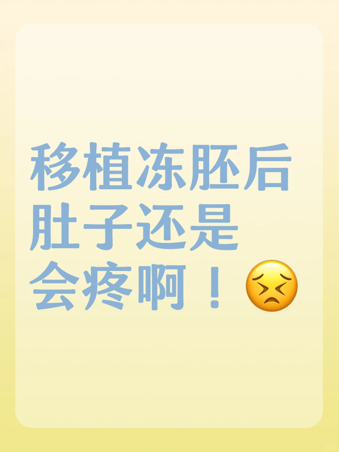 移植冻胚后 肚子还是会疼啊!今天提前半个小时开始输间苯三酚,移植完接着输完,总共大概有两个半小时。移植出来以后还没有觉得肚子疼,刷刷手机,还眯了一会儿,中间有两次觉得移植那一侧肚子抽搐的疼,于是盖上被子平躺一会儿就缓解了。下午回到家躺了一会儿,出去吃饭,逛了会儿商场就回来了。晚上快睡觉了,决定去分分...